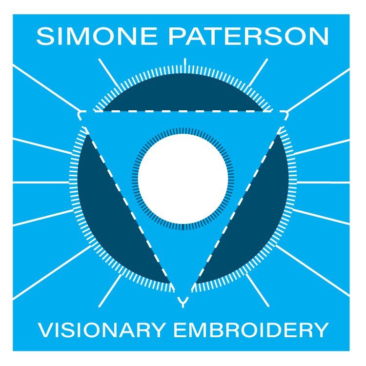 12" x 12" matted. Metallic ink, neon embroidery thread, silk drawing on watercolor and acid free paper.