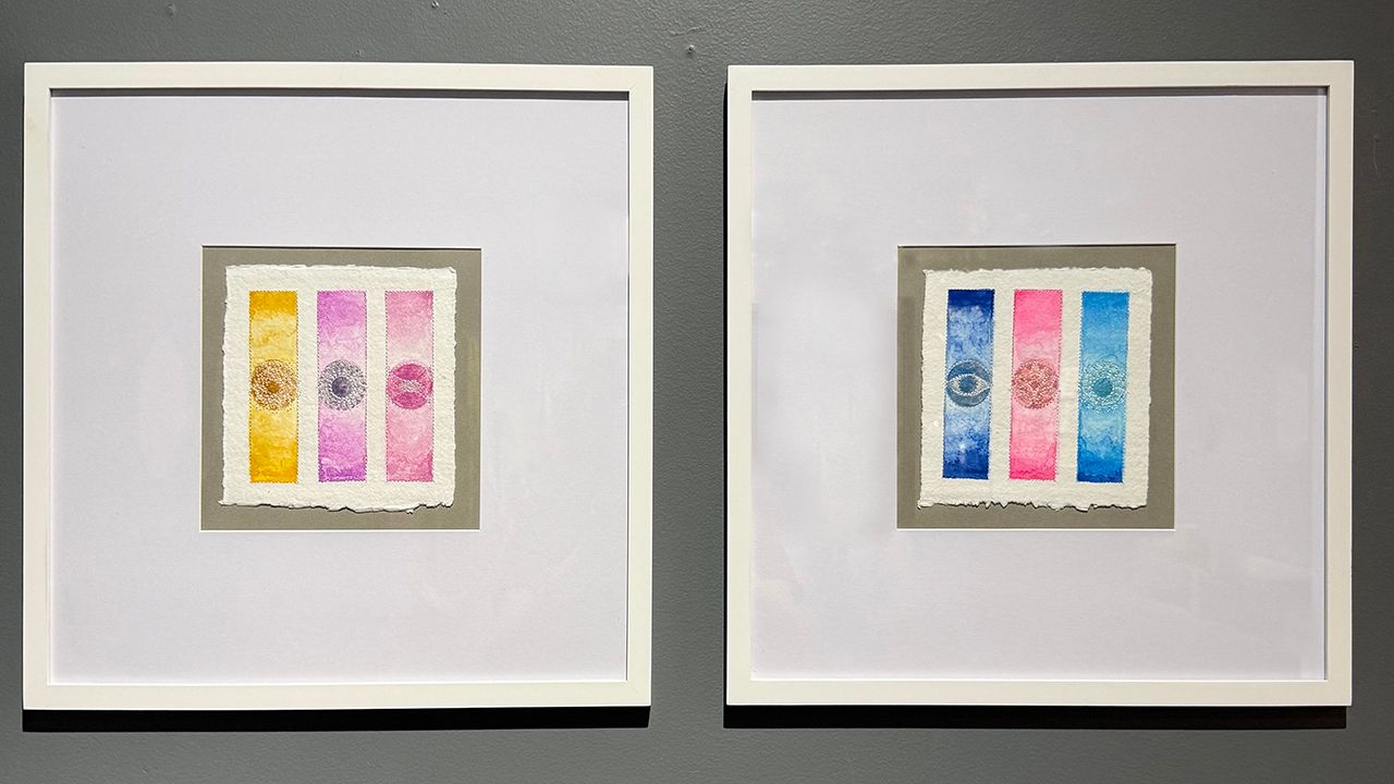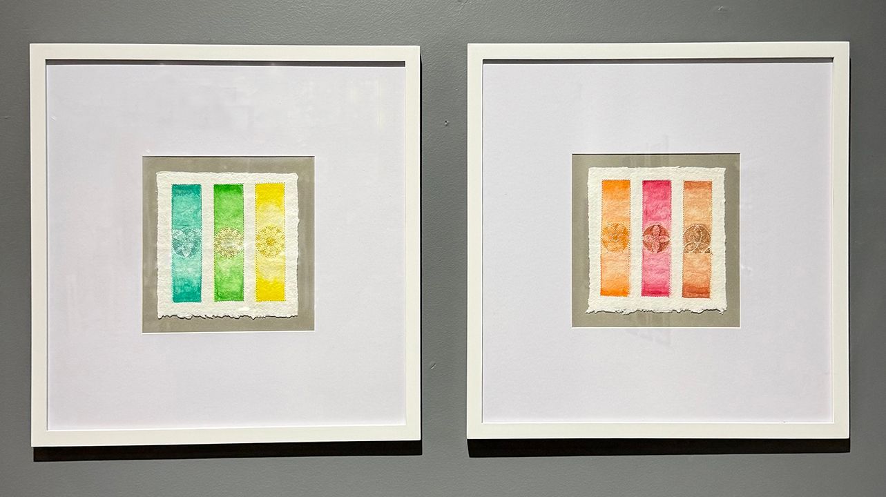 This series began in meditation. In stillness, images would appear—shapes of color and energy that felt both intimate and expansive. For a long time, I carried them quietly. Once I discovered how watercolor and embroidery could work together, the images poured out, one after another, until there were twelve.